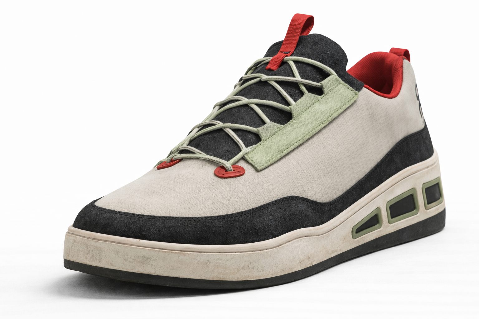 The shoe combines ripstop nylon with a sock-fit construction, delivering durability while remaining lightweight and flexible. Reinforced rubber along the toe box and outsole enhances longevity, particularly when skateboarding. A flat sole provides maximum board contact and ankle support, while the no-tie lacing system with reinforced laces allows users to quickly transition between activities with confidence that the shoe will hold up under stress. Together, these features fulfill the design brief and ensure the shoe feels cohesive within ON’s existing product lineup.