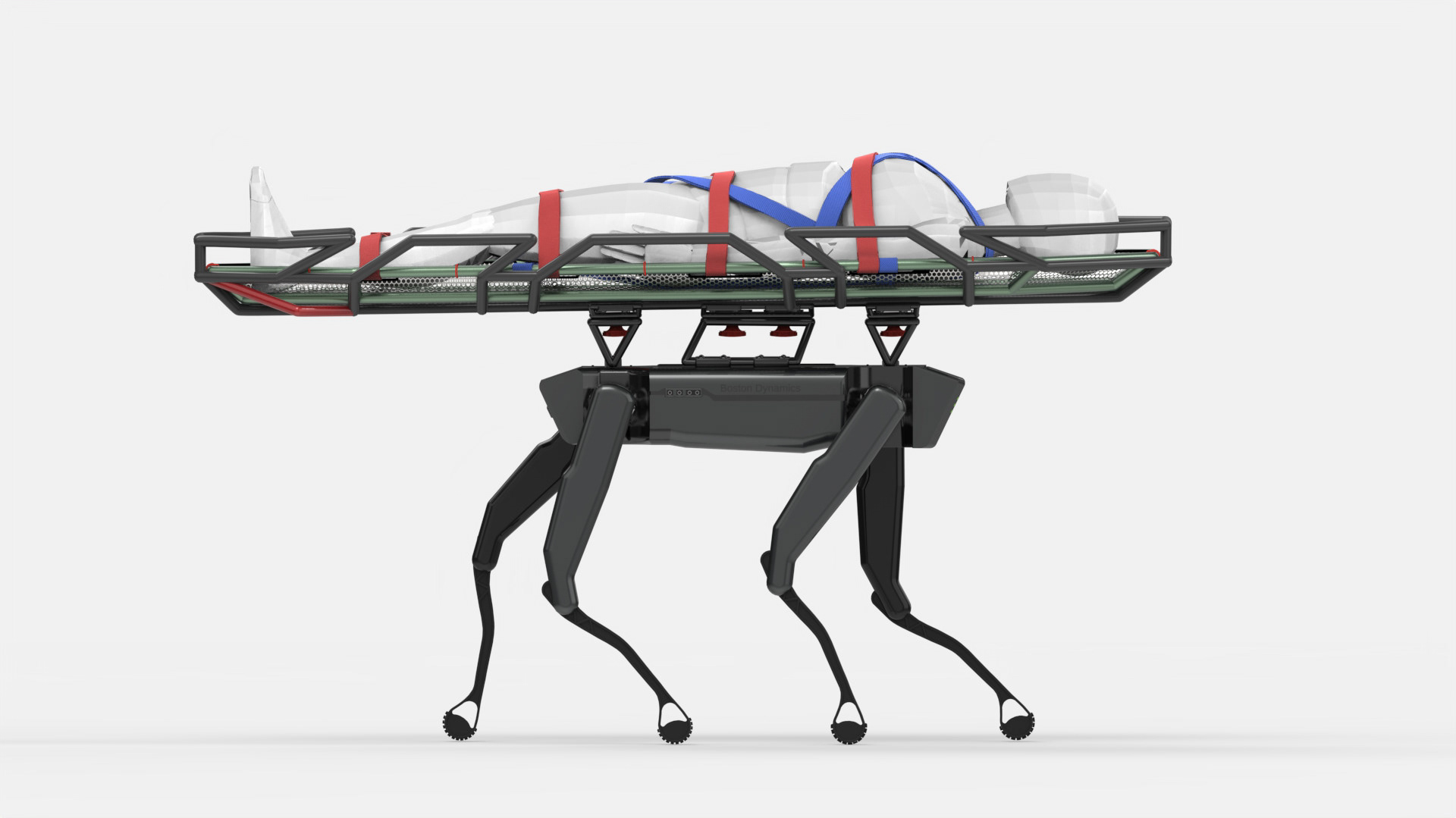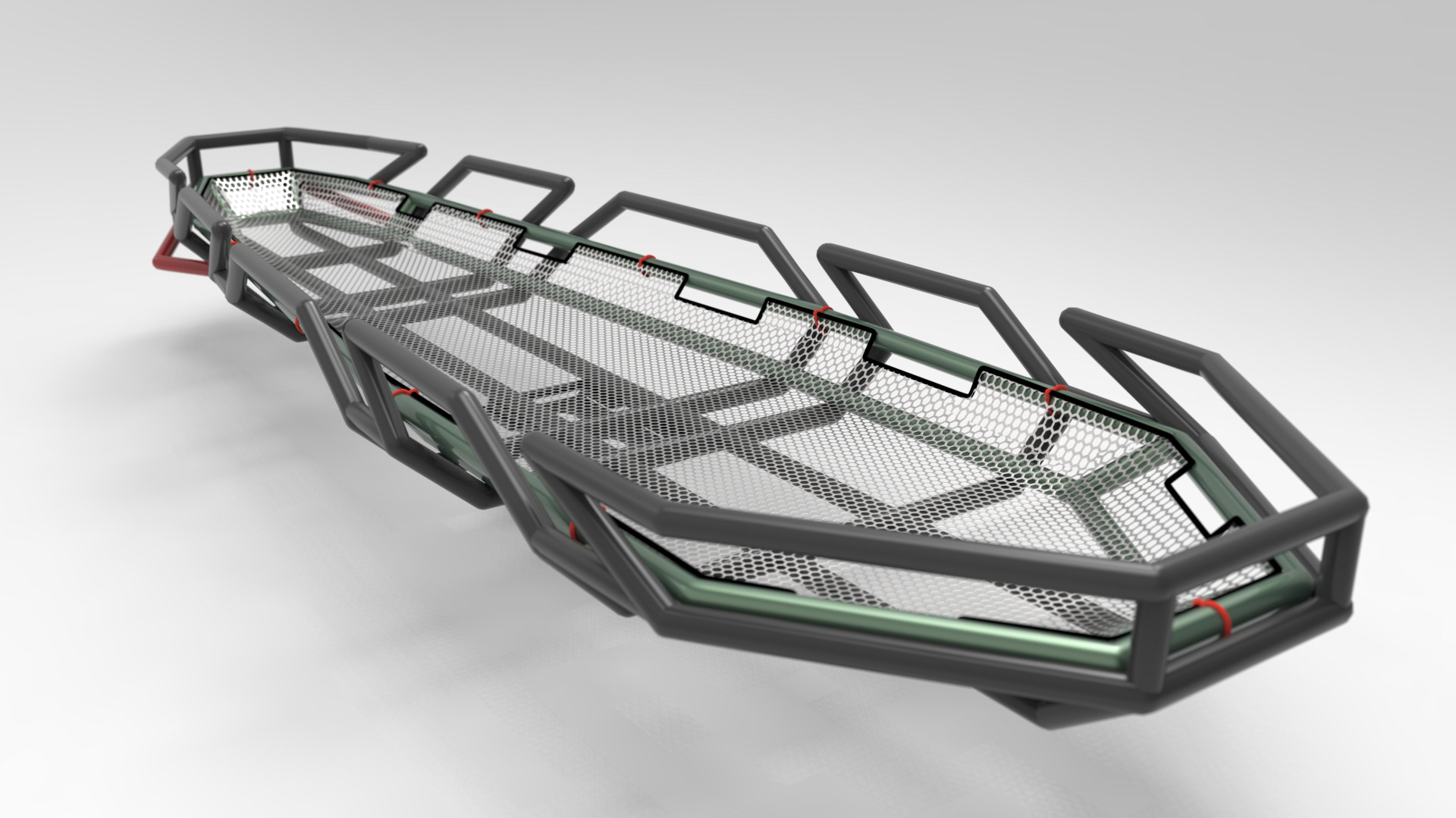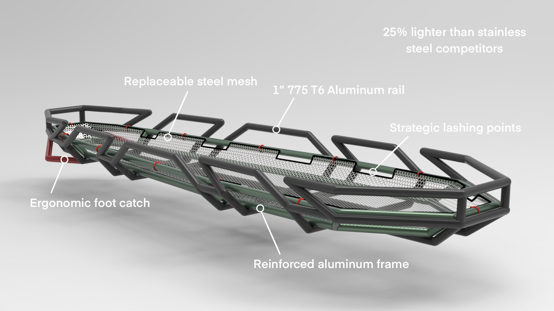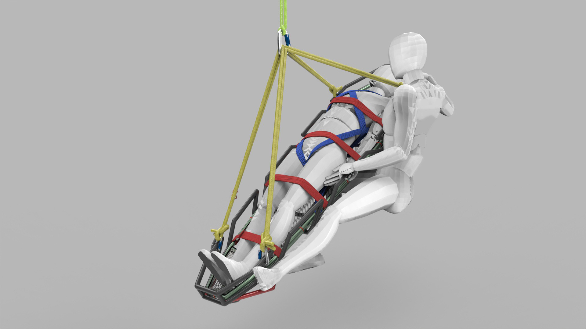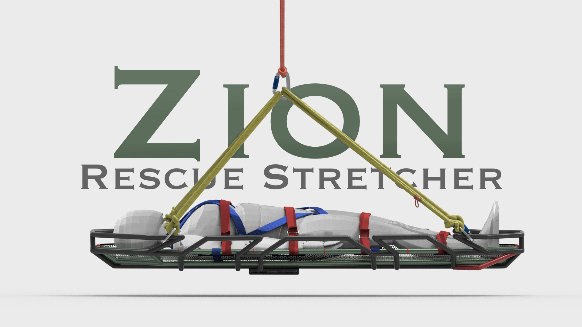 The Zion Rescue Stretcher is mounted by a proprietary mounting system designed specifically for this project.