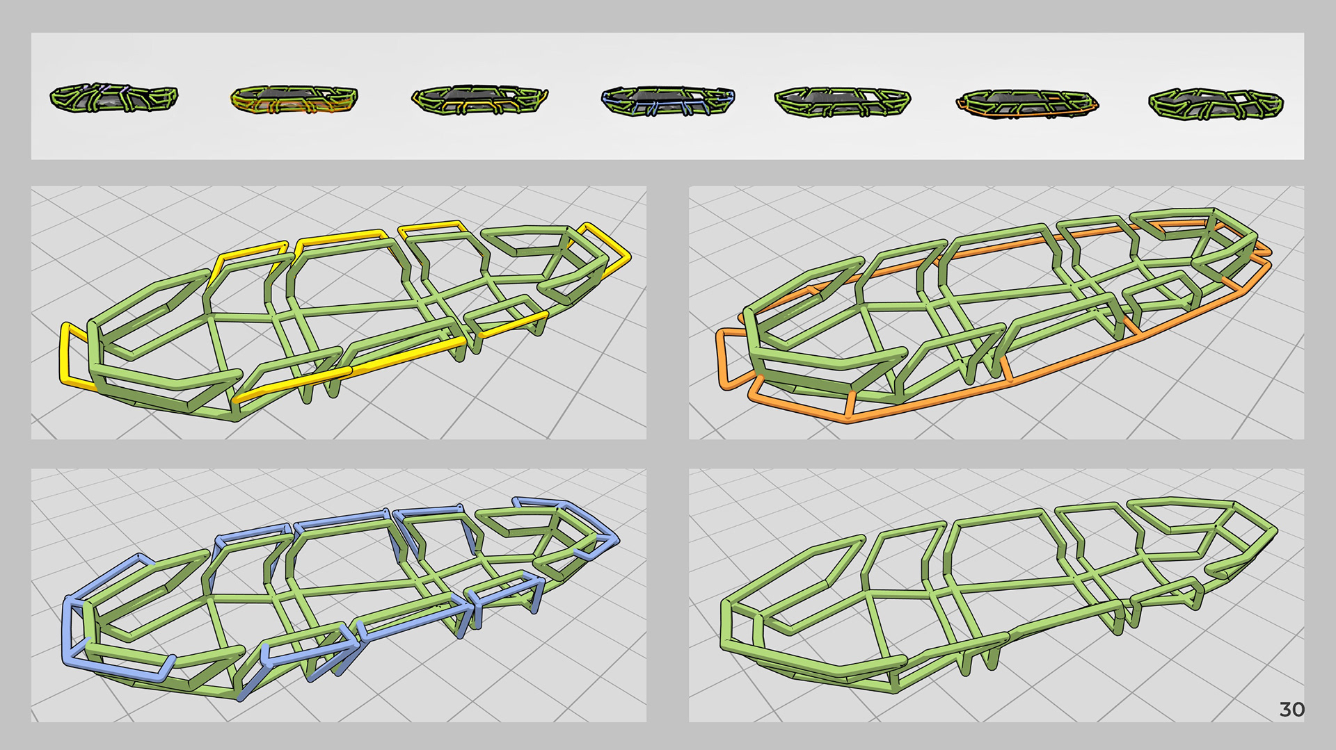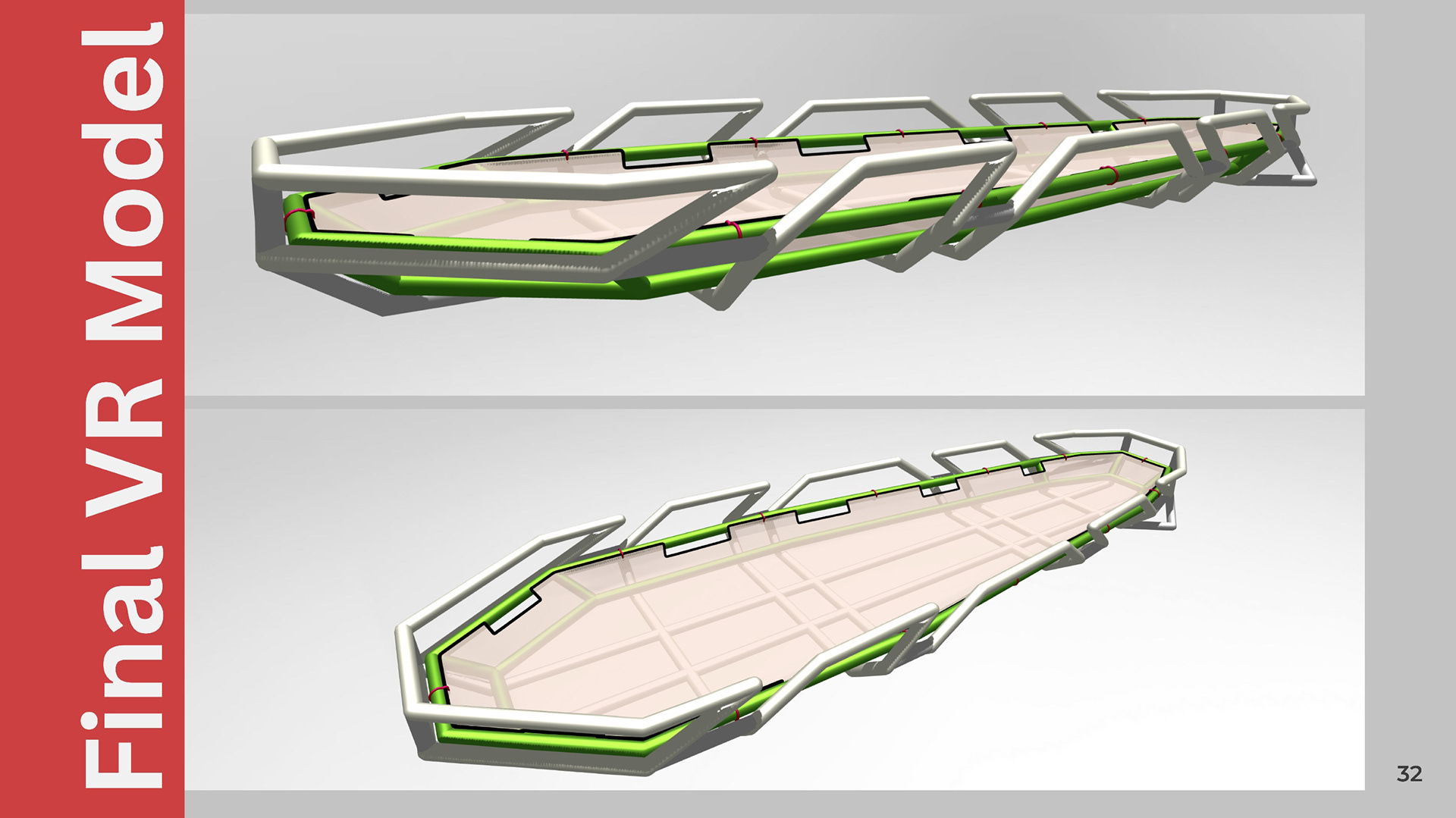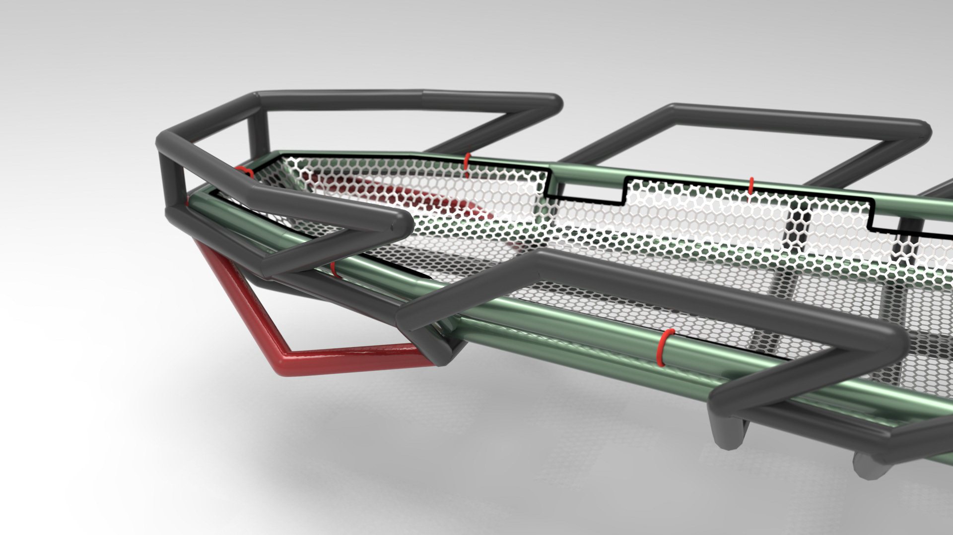 To solve the problem of changing the stretcher's orientation, I ideated on a foot plant strategically located at the foot of the stretcher.
